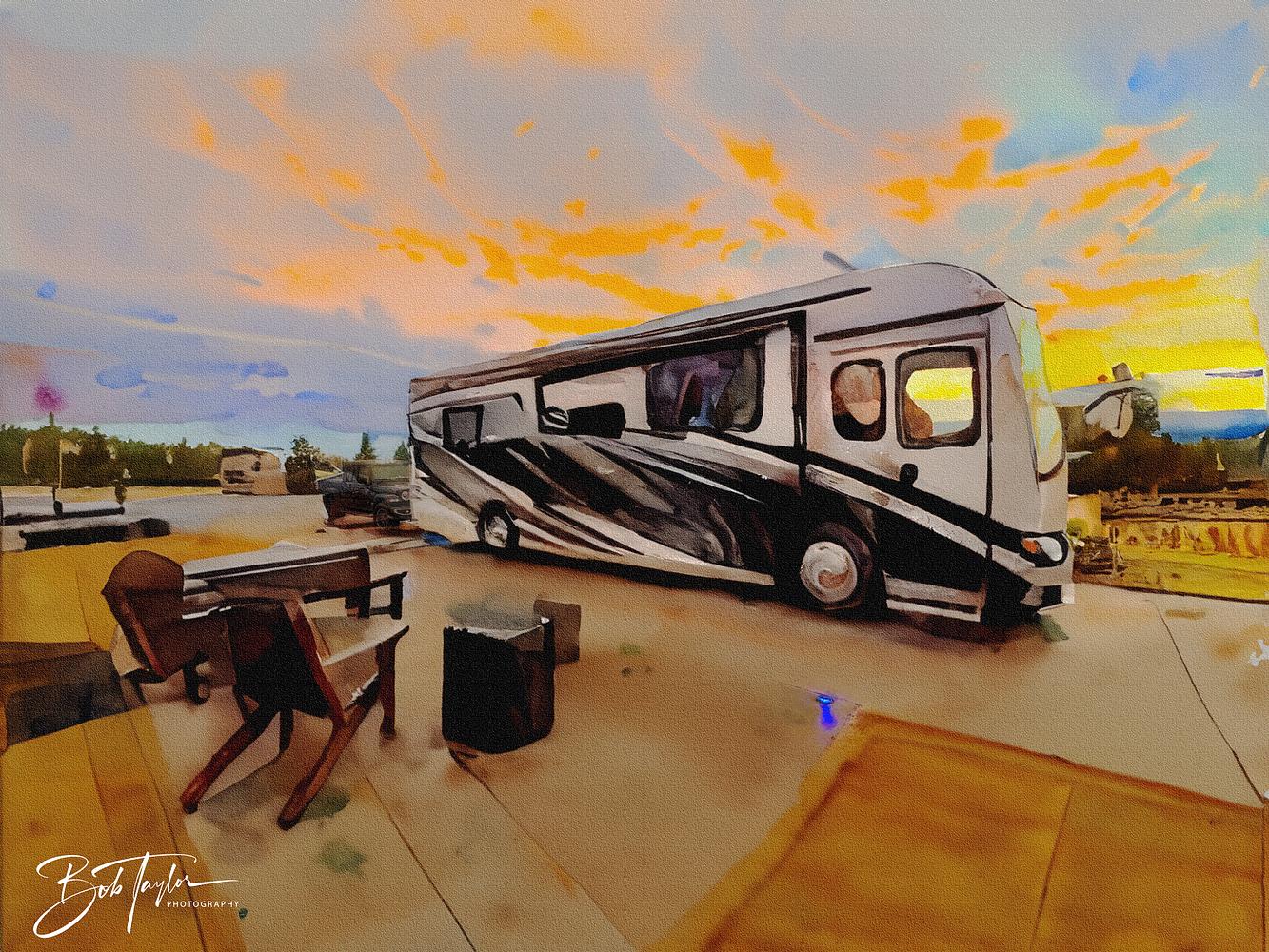 RV Travel Artwork - RV at Sunset - Watercolor - 1