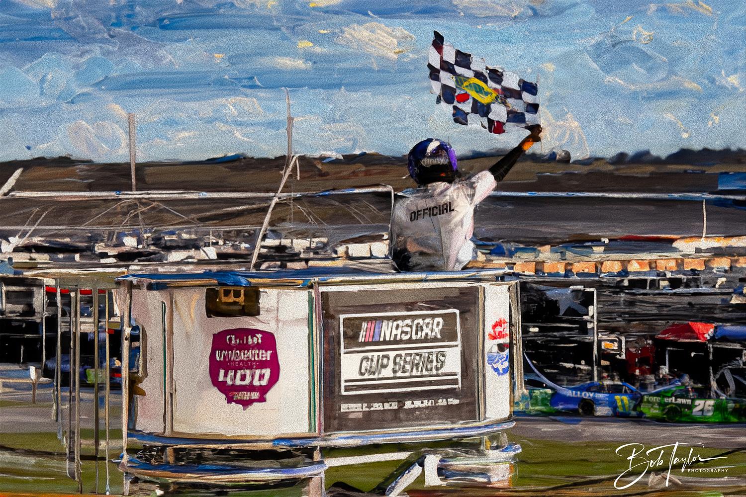 An artistic rendering of a photo taken at the Atlanta Motor Speedway in March 2024.