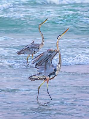 Prancing Herons 1 - Artistic Rendering - 3x4