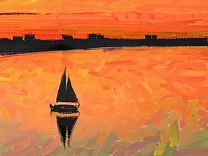 Sunset with Sailboat 2 - Artwork Oil